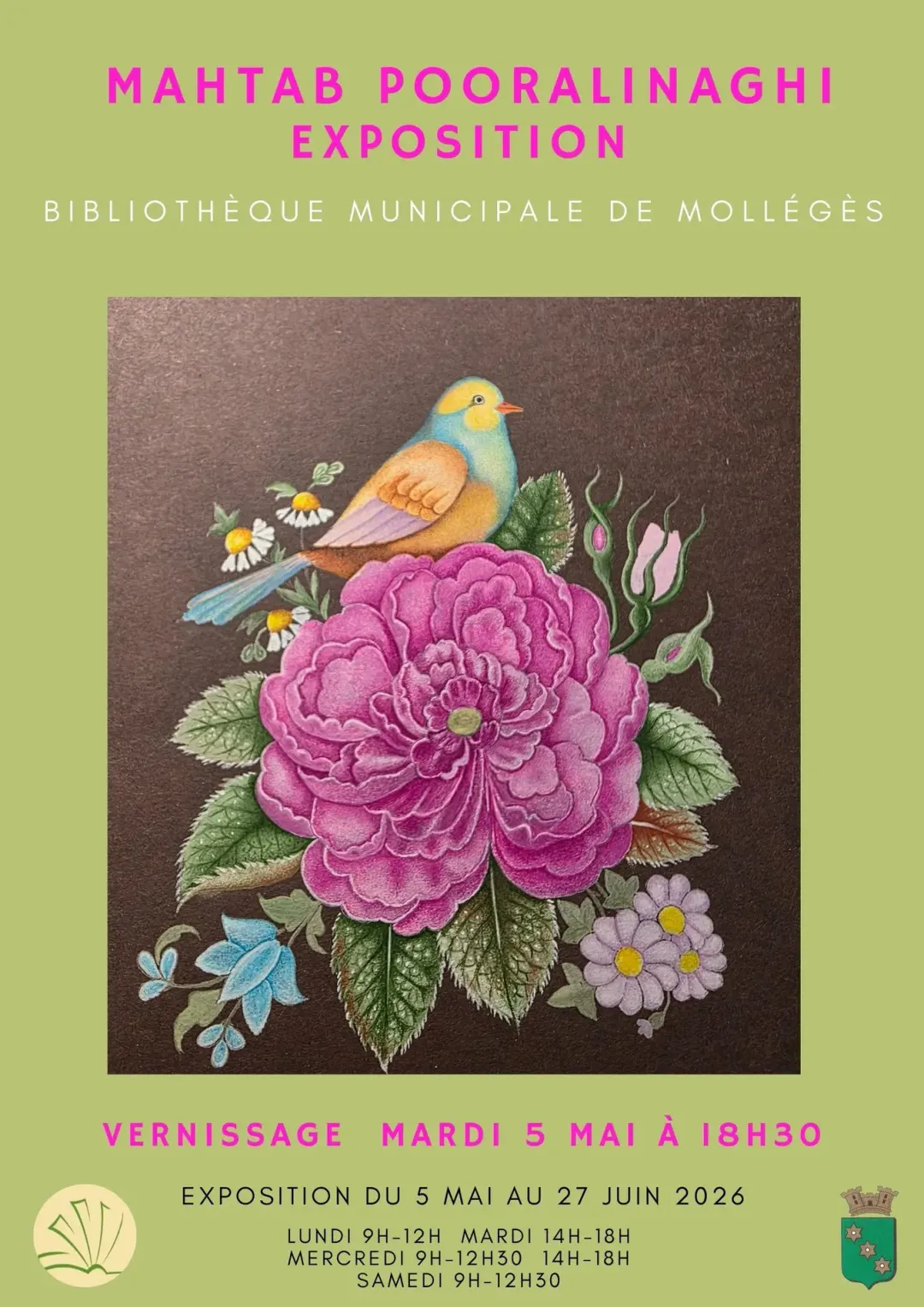 Exposition de peintures de Mahtab Pooralinaghi à la bibliothèque municipale de Mollégès.
