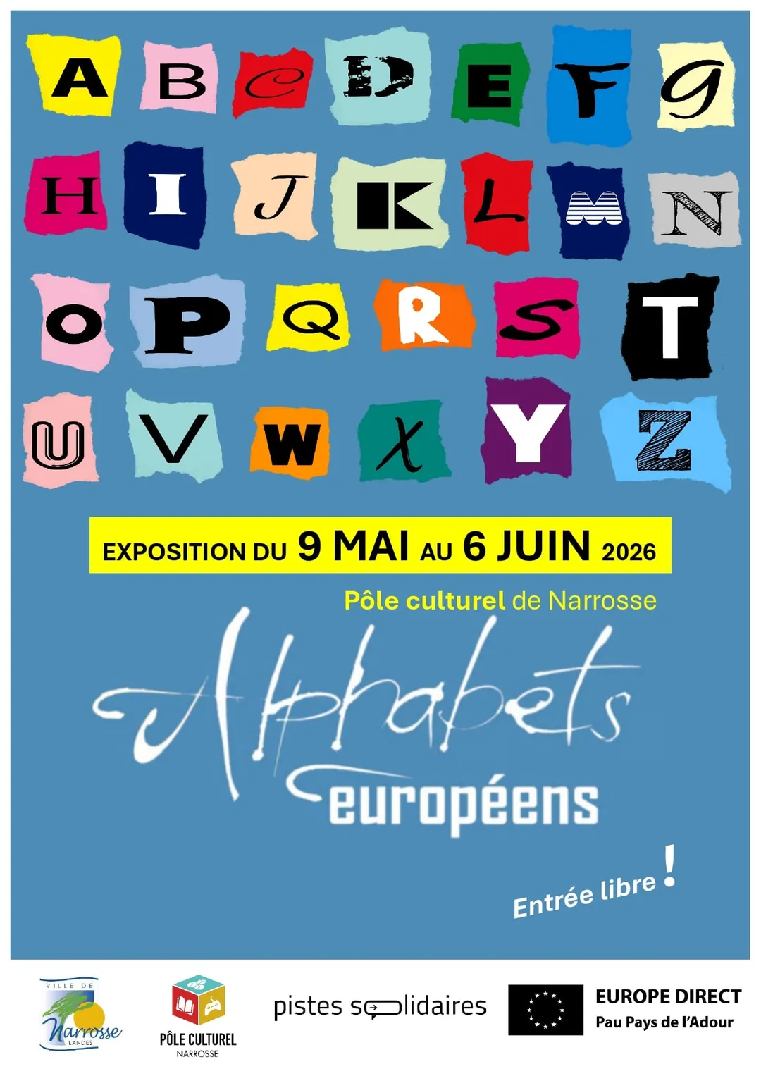 Cette exposition s'inscrit dans le cadre de l'événement "Joli mois de l'Europe". Elle invite à découvrir les trois grands alphabets européens pour mieux comprendre les origines des langues européennes, les familles linguistiques mais aussi notre histoire commune.