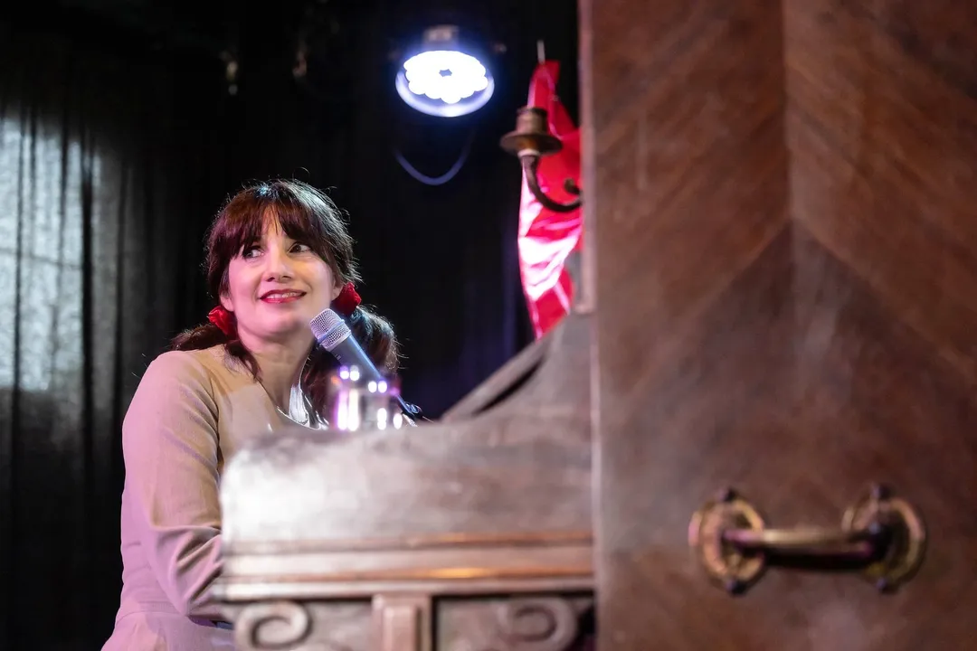 Dans sa petite robe désuète, affublée de ses deux couettes, elle ne manquera pas de vous faire rire et de vous surprendre. Glissant d’un personnage à l’autre, elle vous emmènera dans les méandres de la chanson à texte d’hier et d’aujourd’hui pour votre plus grand plaisir. Sûr que vous en reconnaitrez certaines !