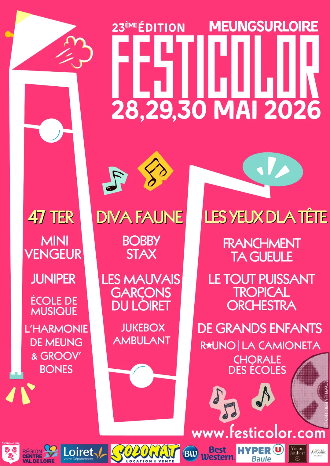 Festival incontournable du Loiret ! Festicolor vous propose cette année sa 23ème édition ! En 2026 Festicolor reste ouvert à tous les publics, de la chanson française, du rock, des découvertes, des valeurs sûres, des groupes locaux, des groupes à la notoriété nationale…