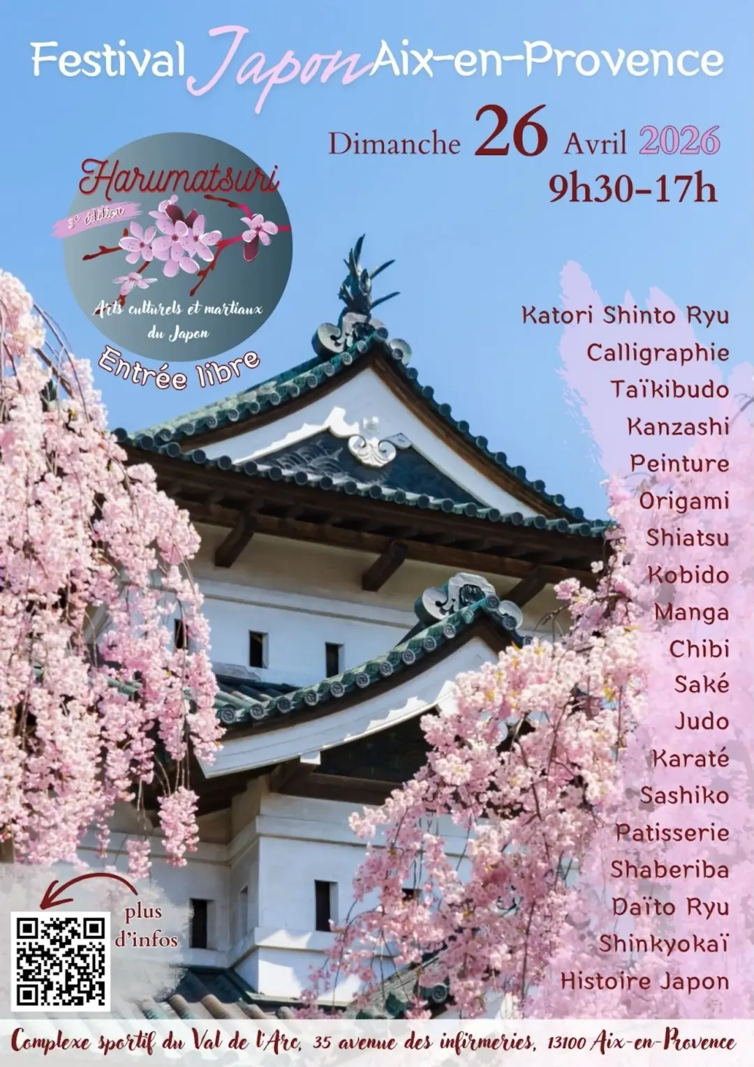 Le dimanche 26 avril, le complexe sportif du Val de l’Arc accueillera la 3ᵉ édition de Harumatsuri, le festival du Printemps organisé par Shinkyokaï, Académie d’arts martiaux et culturels.