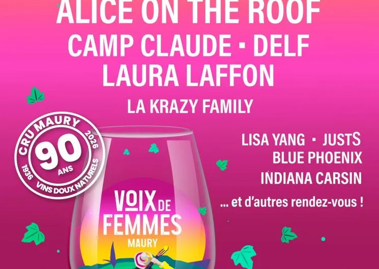 *Vendredi 12 juin 2026: – 17h : Chorale des enfants -> Lieu: Domaine Semper – Entrée libre – 18 h : Indiana CARSIN -> Lieu: Clos des Vins d’Amour – Prix public: 5 € avec verre de VDN 19h : ouverture des portes cave Gelly- Les Vignerons de MAURY – 145 avenue Jean Jaurès – Prix public: 20 € – 21h : Delf – 22h30: Alice On the Roof