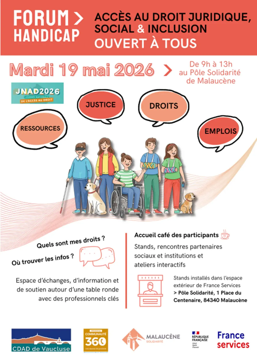 Un événement ouvert à tous pour s’informer sur les droits, la justice, l’emploi et les ressources. Rencontres, stands, ateliers et échanges avec des professionnels pour mieux comprendre ses droits et trouver des solutions adaptées.