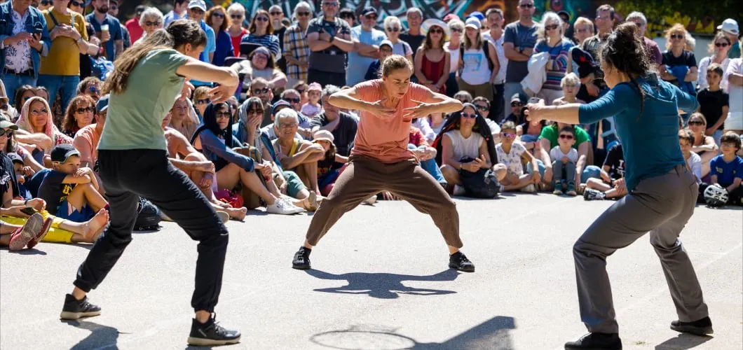 Trois femmes se glissent dans la ville pour y semer la révolte. Elles collent des slogans sur les murs, racontent leur histoire, chantent, dansent. Elles embarquent le public avec elles dans une manifestation poétique. Leur urgence : tisser des liens et agir sur le monde.