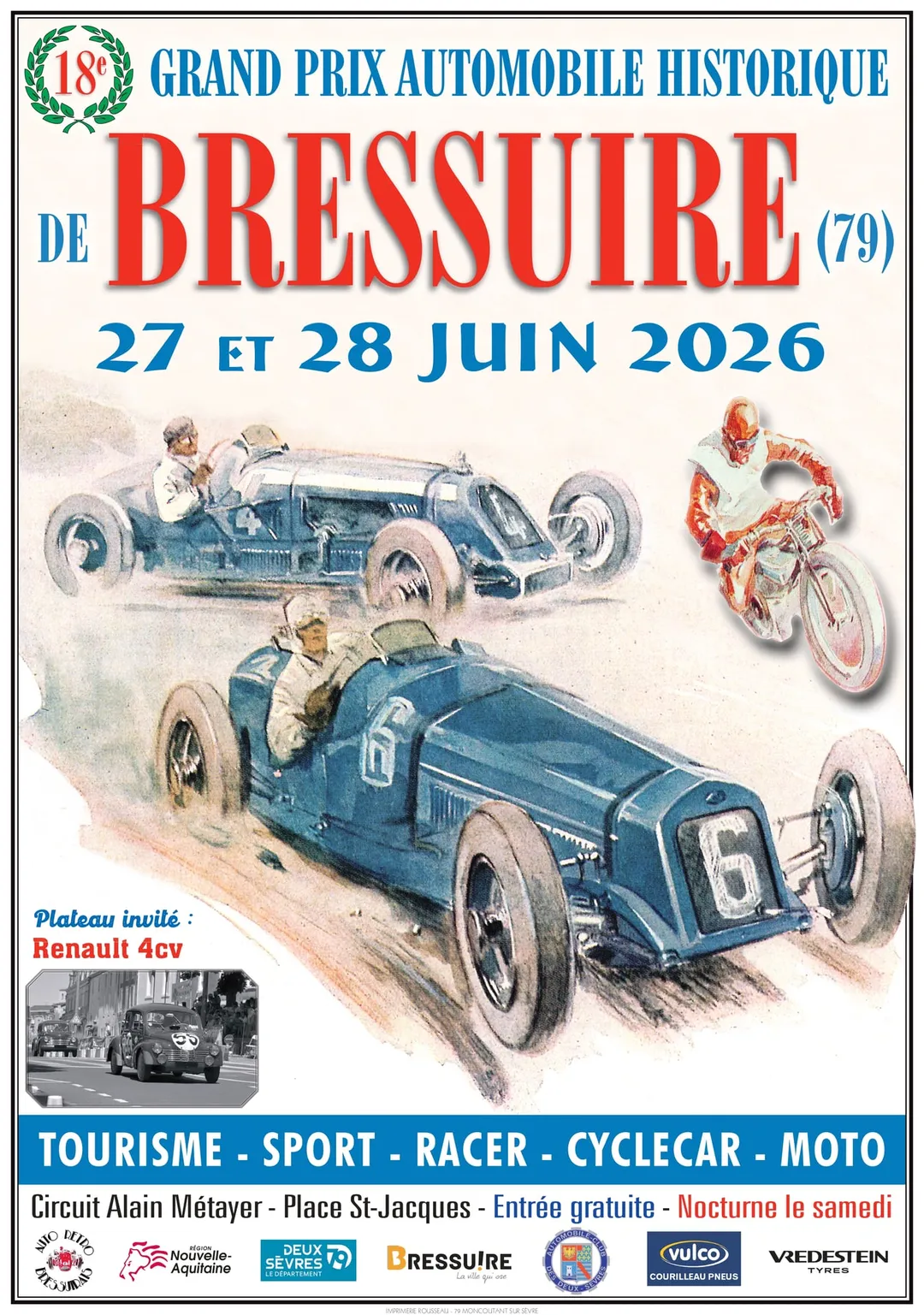 Un Musée Automobile vivant pendant 2 jours avec une centaine de voitures anciennes (1930 à 1970) sur un circuit en ville dans l'esprit des Grands Prix des Années 50 (bottes de paille, odeurs d'huile de Ricin et autres pétarades).