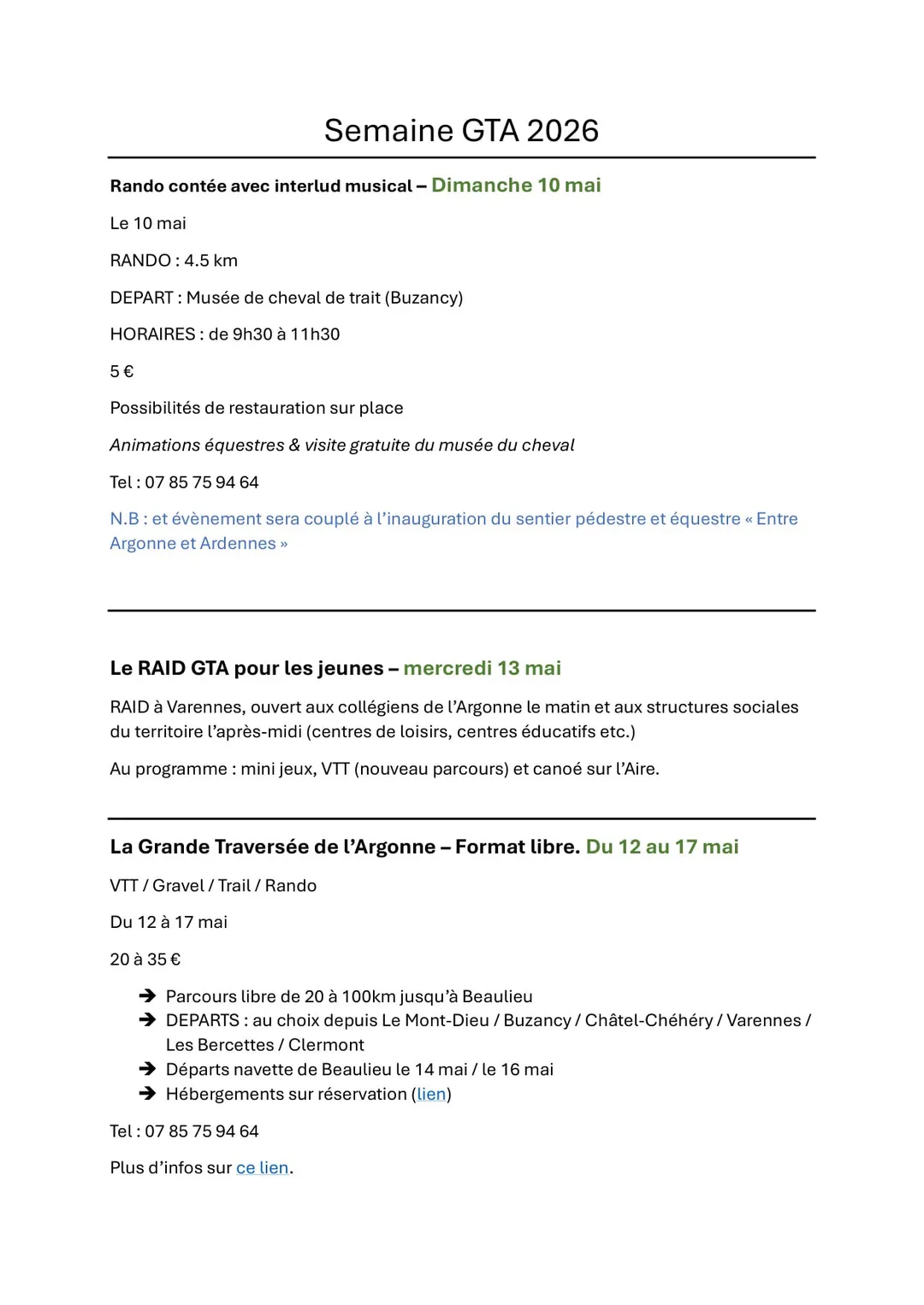 > et l'Argonnaise avec plusieurs boucles pédestres et VTT le 17 mai à Beaulieu-en-Argonne.