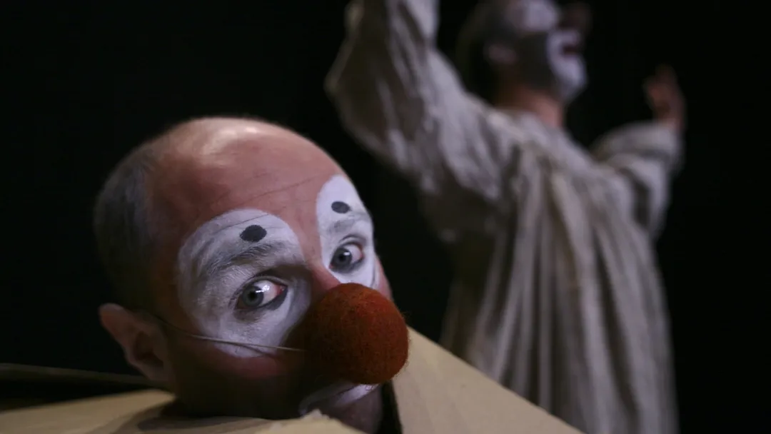 Sur scène, deux de drôles de personnages ; le nez rouge, la dégaine ne sont pas sans rappeler les clowns des pays de l’Est. Mais ce clin d’œil à la tradition se double d’un goût prononcé pour l’imaginaire, allié à un sens inné du comique et à une technique d’acrobate hors pair.