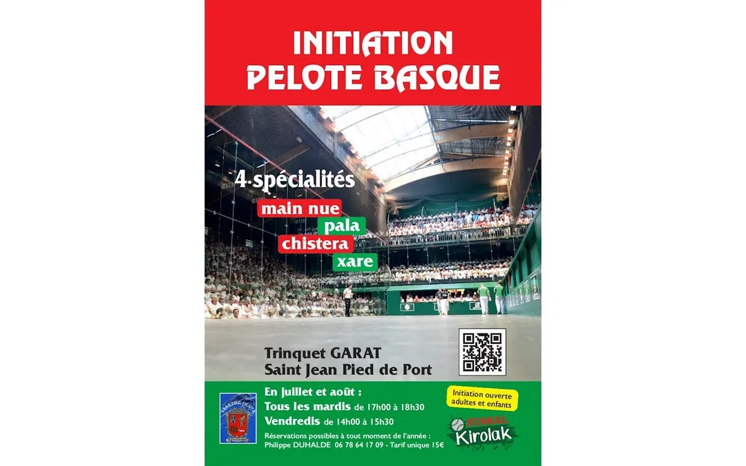 4 spécialités: main nue, pala ancha, xare, chistera. A partir de 4 ans. Mini 5-maxi 15 personnes.