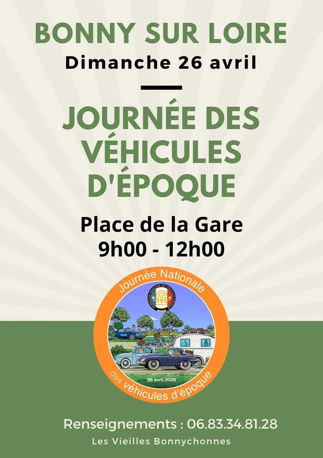 A l'occasion de la Journée des véhicules d'époque, les Vieilles Bonnychonnes vous donnent rendez-vous le dimanche 26 avril sur la Place de la Gare de Bonny-sur-Loire pour un rassemblement de véhicules anciens exceptionnel ! Venez admirer des voitures de collection et échanger avec des passionnés