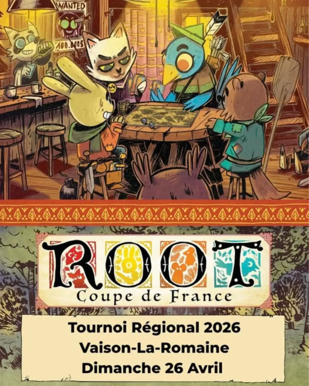 Un tournoi du jeu de société Root ludique et captivant avec 2 à 3 parties enchaînées dans une ambiance conviviale. Un soupçon de compétition, surtout de grands moments de stratégie , de fun et de rencontres. inscriptions avant le 22 avril.