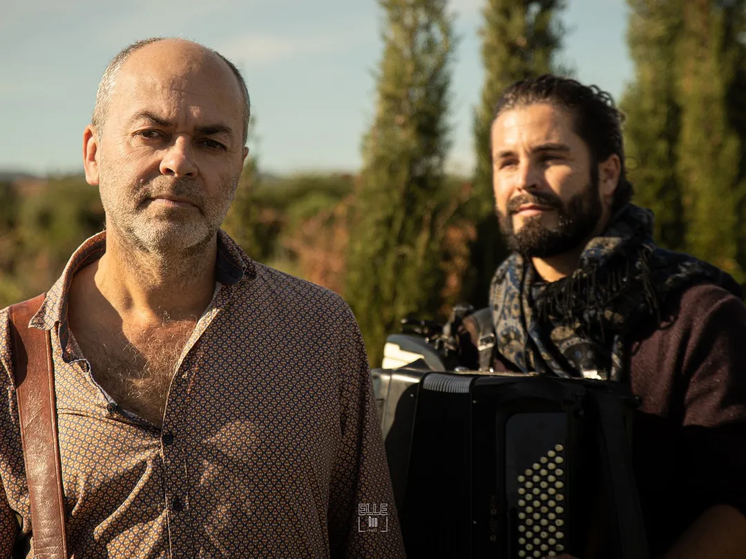 Guilhem Verger pulse un air chaud des poumons de son accordéon, avec une inventivité harmonique et rythmique toujours renouvelée. Laurent Cavalié envoie une poésie nourrie des histoires et de la vie des gens de son monde languedocien, ouvert à tous les vents du monde. Sa percussion, un gros tambour appelé dans son pays la Bombe du Lauragais, martèle nos imaginaires séculaires. Ensemble ils construisent un groove puissant et délicat, au service d’une poési