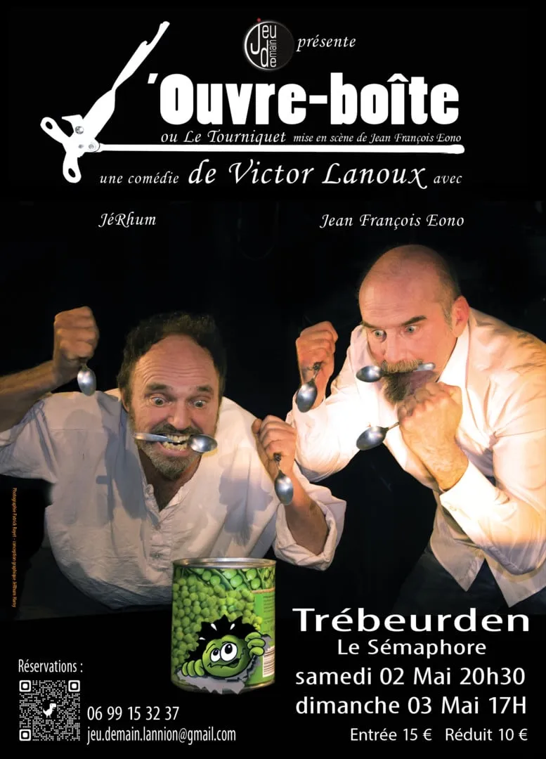 Après une catastrophe planétaire, deux individus que tout oppose, l’un analphabète, Jacques, l’autre intellectuel, Jean, doivent cohabiter, réfugiés dans un abri souterrain avec pour seule nourriture une réserve de boîtes de conserve et quelques paquets de gâteaux.Leur perspective s’assombrit davantage quand l’ouvre-boîte indispensable à leur survie disparaît…