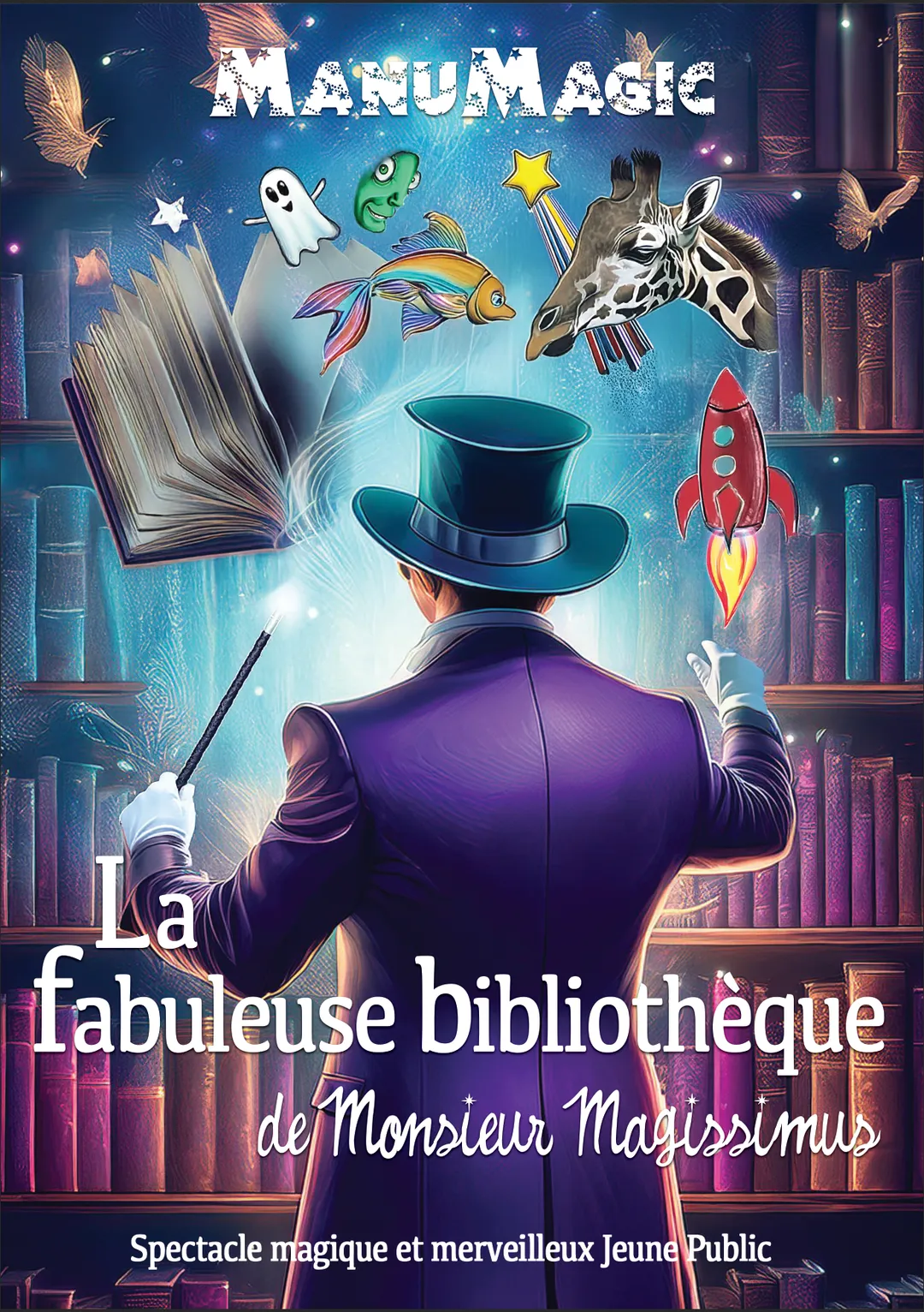 Samedi 23 mai de 20h à 21h > Spectacle avec Manumagic," La fabuleuse bibliothèque de Monsieur Magissimus"