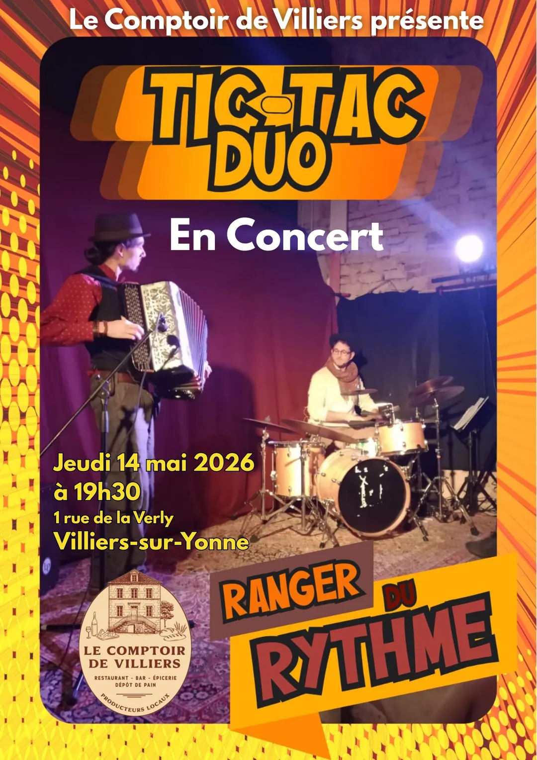 Le comptoir de Villiers présente : Tic-Tac Duo en concert - Ranger du rythme - Assemblage rare d'une batterie & d'un accordéon bien dépoussiéré