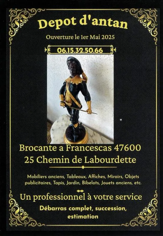 Chaque 3 ème dimanche du mois, le Dépôt d'Antan propose une Brocante Vide grenier ouverte au public. Chacun peut y trouver du mobilier ancien, des tableaux, affiches, miroirs, objets publicitaires, ta
