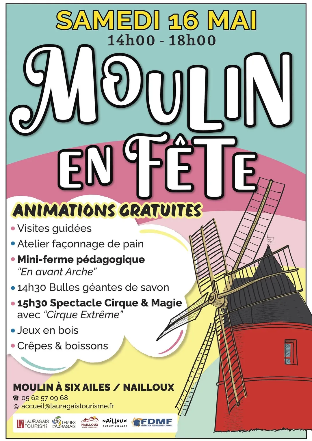 Tout un programme vous attends au moulin à 6 ailes de Nailloux pour cette journée de fête :