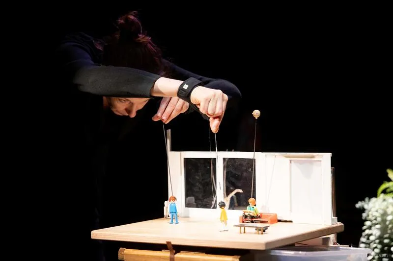 Pourquoi Claire Lagrange ne parle-t-elle plus ? Dans cet établissement coupé du monde et hors du temps, en lisière d’une forêt profonde, deux habitués observent cette femme récemment arrivée, qui peint sans un mot. Autrice et metteuse en scène belge, Céline Delbecq trace avec sensibilité l’histoire d’une femme tout ce qu’il y a de plus ordinaire et adaptée qui bascule. En s’appuyant sur des figurines de Playmobil dans un décor miniature, elle apporte humour et distance à ce récit qui interroge l’irruption de la psychose et sa cause. Sans être dans l’explication rationnelle, sa pièce adopte le rythme contemplatif de ses personnages et cultive un doux mystère.