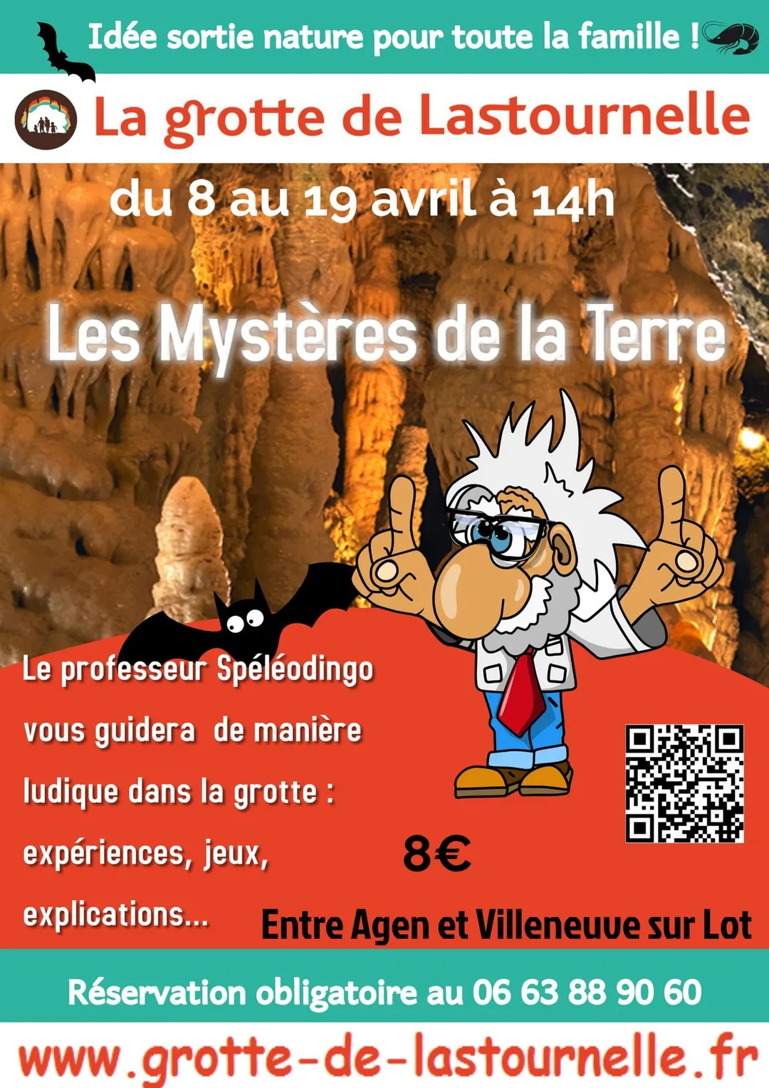 Le Professeur Spéléodingo vous fera découvrir de manière ludique avec des expériences, histoires… la grotte de Lastournelle.
