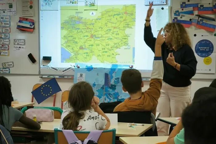 Six écoles maternelles, six écoles élémentaires et un collège ont réalisé des cartes personnalisées de pays européens pour créer une carte géante et unique de l'Union européenne.
