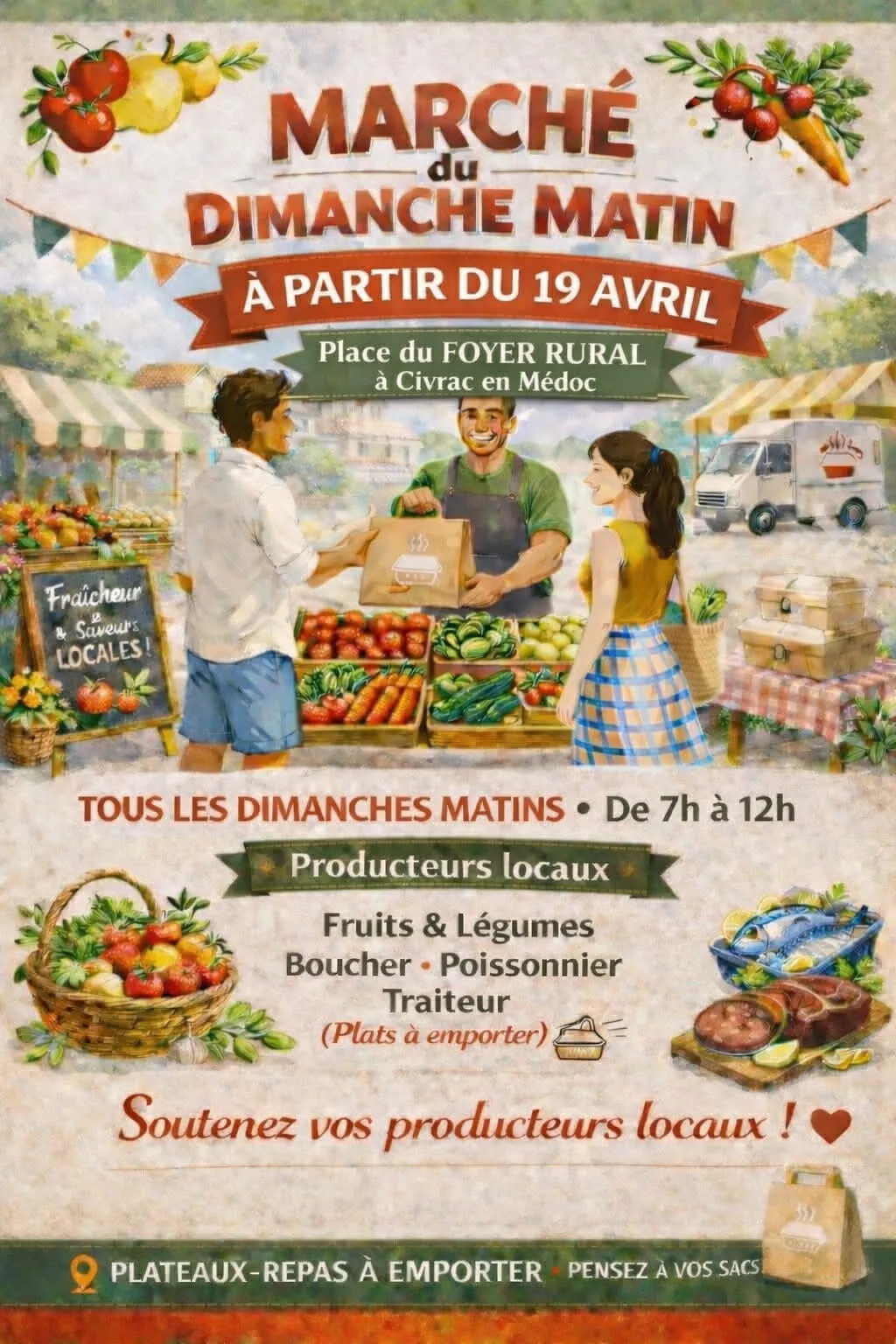 Le marché hebdomadaire se tient les dimanches matins. Venez découvrir les spécialités locales et régionales de nos différents commerçants.