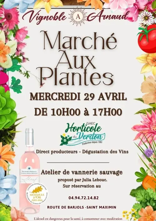 Marché aux plantes direct producteurs et une dégustation de vins. Un atelier de vannerie sauvage est également proposé sur réservation.