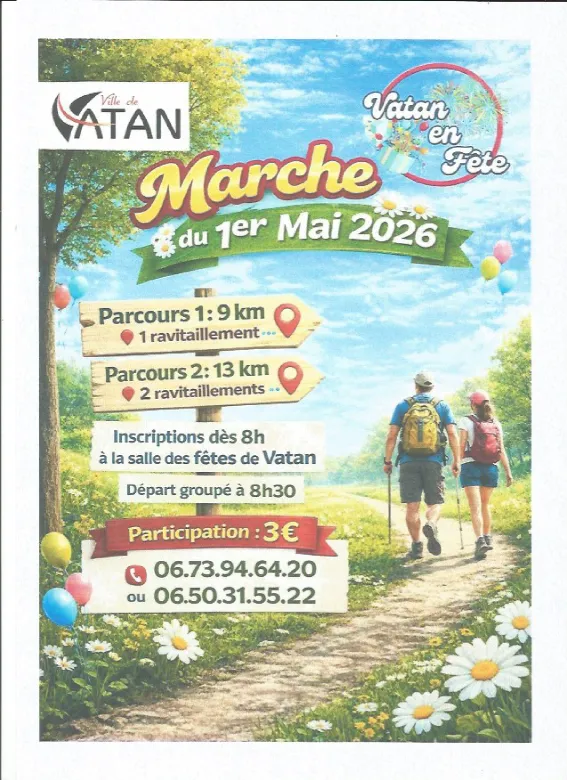 L’association Vatan en Fête a le plaisir de vous convier à une marche conviviale qui aura lieu le 1er mai 2026 à Vatan.