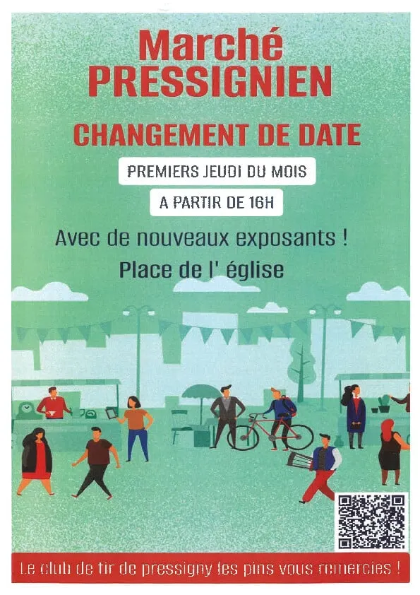 Marché : Le premier jeudi de chaque mois : boulangerie, primeurs, fromager, rôtisseur...
