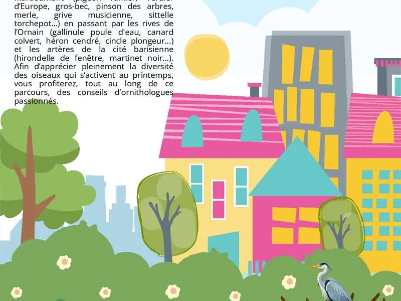 d’Europe, gros-bec, pinson des arbres, merle, grive musicienne, sittelle torchepot...) en passant par les rives de l’Ornain (gallinule poule d'eau, canard colvert, héron cendré, cincle plongeur...) et les artères de la cité barisienne (hirondelle de fenêtre, martinet noir...).