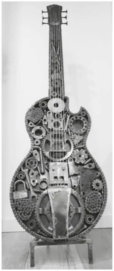 C’est un travail de deux ans autour des guitares qui a été mené par la classe de CAP chaudronnerie, métallerie et soudure, avec pour point de départ le salon de musique.