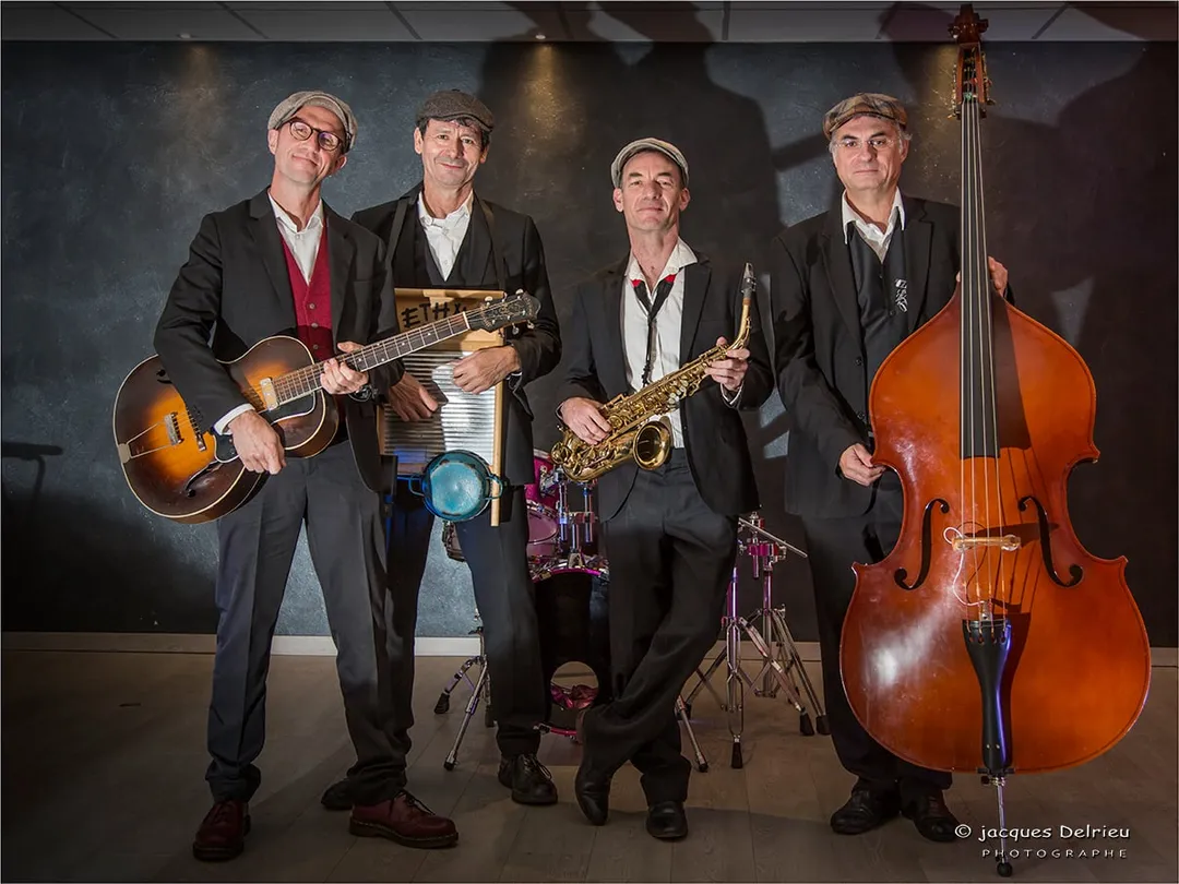 Leur répertoire, résolument rétro, revisite les grands classiques du jazz de l’époque tout en laissant une large place au chant, alternant standards revisités et compositions originales. Les amateurs de swing, se laisseront emporter par la rythmique effervescente et les improvisations pleines de charme. Entre virtuosité musicale, complicité évidente et moments de pur humour, le quartet crée une atmosphère festive qui transporte le public directement dans les clubs de jazz des années 30.