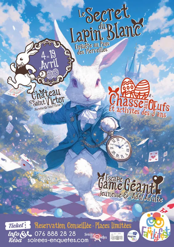 À l’occasion de Pâques 2026, le Château Saint Victor (Secteur Tôtes 76) prend des allures de Pays des merveilles et met le Lapin Blanc à l’honneur dans des aventures inspirées de l’univers de Lewis Caroll !!