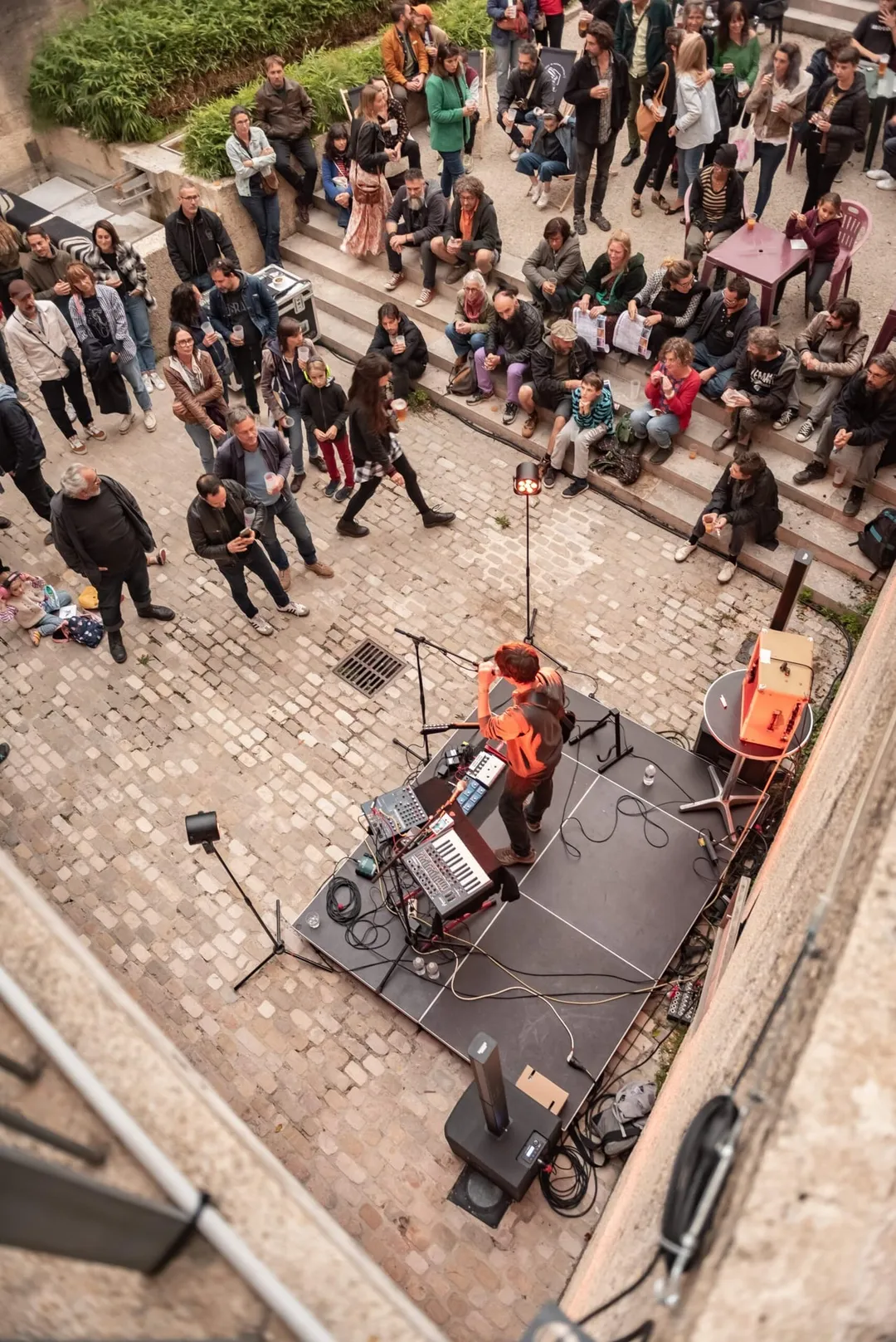 La cour du Camji se métamorphose, le temps d’une soirée, en un écrin sonore au cœur de la verdure. Trois concerts, trois univers, une seule ambiance à partager. On s’installe dès la fin de journée, baigné par les premières notes encore éclairées par le soleil. Puis la lumière décline, la musique accompagne le crépuscule et l’atmosphère devient plus intime, presque magique. La programmation, volontairement éclectique, invite à la découverte et à la surprise, sans aucune frontière musicale. Ce rendez‑vous veut devenir un rituel : un moment que l’on attend, que l’on coche dans son agenda, où l’on vient autant pour vibrer que pour se retrouver et contempler.