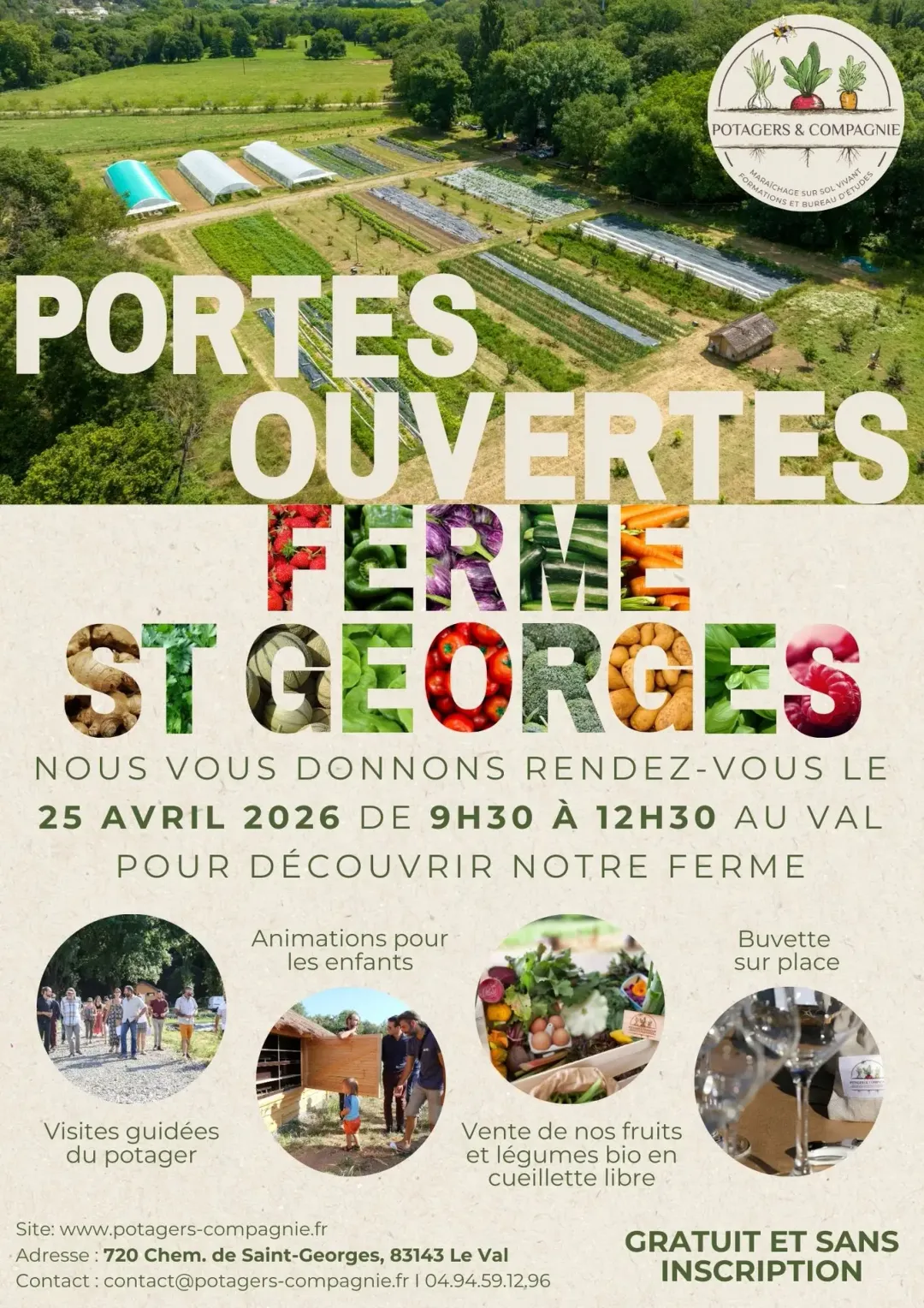Visites guidées du potager, animations pour les enfants. Venez découvrir la ferme. Buvette sur place