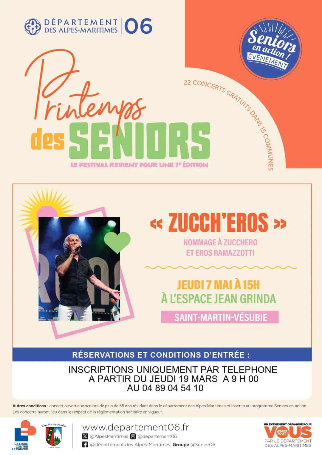 Inscription uniquement par téléphone à partir du jeudi 19 mars à 9h au 04 89 04 54 10
