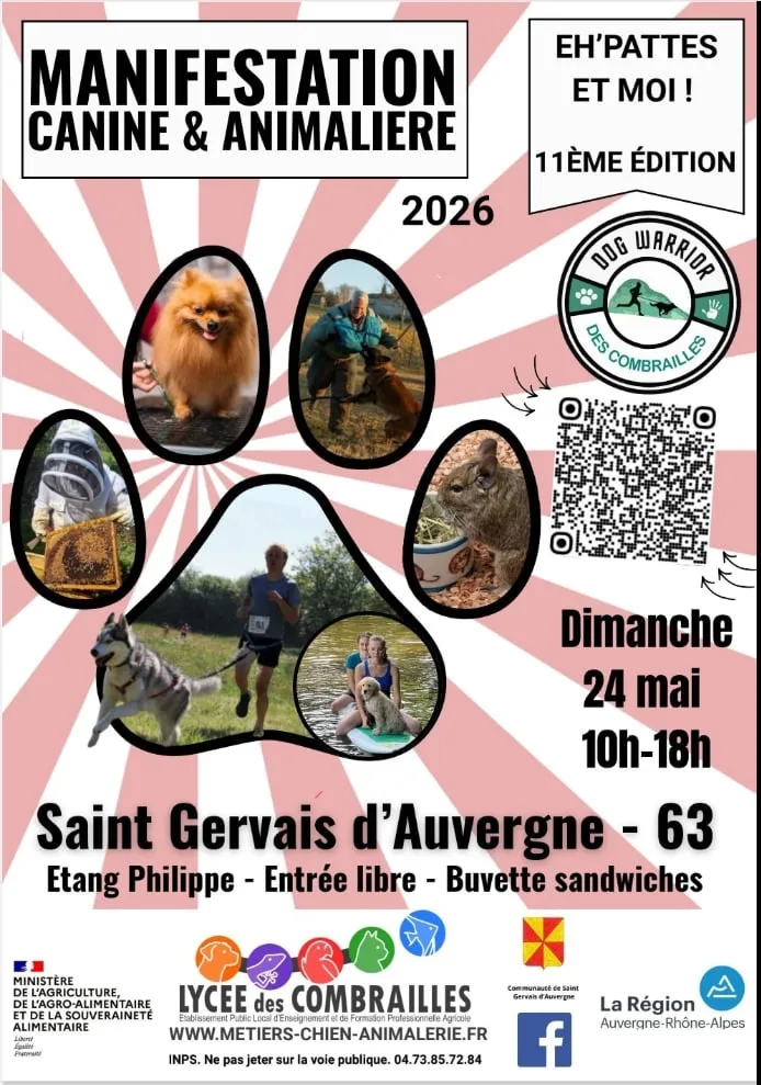 Les élèves du Lycée agricole des Combrailles organisent une manifestation canine, féline & animalière, et leur Dog Warrior, parcours d'obstacles avec son chien. Démonstrations canine et nombreuses animation tout au long de la journée.