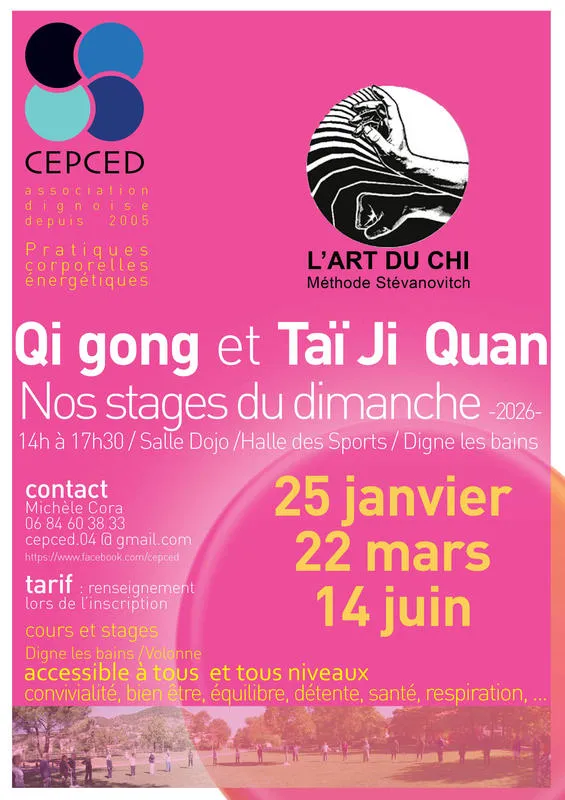 Stage de 14 à 17h30 à Digne les bains. Tout public, débutants bienvenus. Prévoir un tapis, un coussin type zafu et éventuellement plaid pour se couvrir lors de la relaxation et/ou pour plus de confort d'assise. Des vêtements souples sont recommandés.