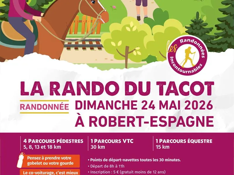 Au départ de Robert-Espagne, la Rando du Tacot propose une offre complète à destination des randonneurs pédestres, des VTTistes et des cavaliers avec des circuits de distances variables.
