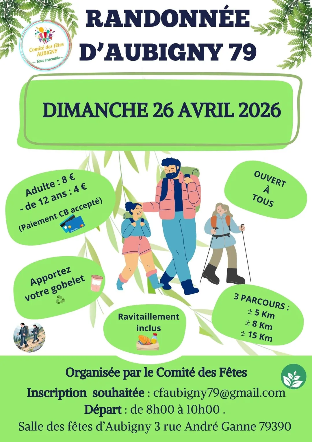Le comité des fêtes, vous propose de découvrir les paysages d'Aubigny et des alentours avec 3 circuits de randonnée pédestre 5km, 8 km ou 15 km .
