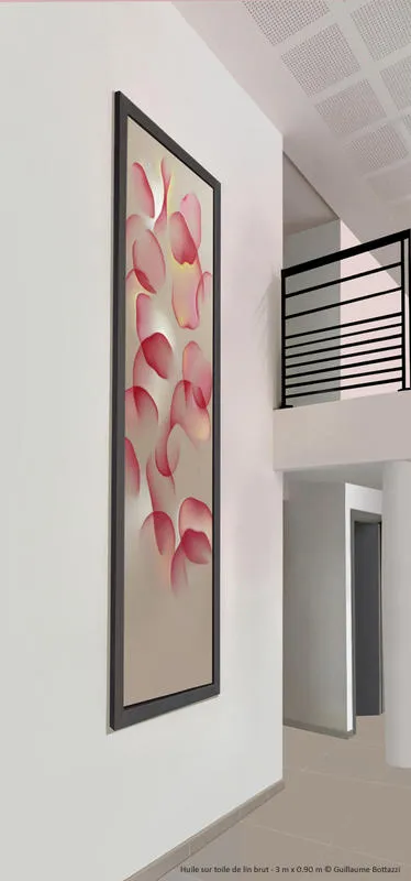 L’artiste Guillaume Bottazzi a réalisé trois belles huiles sur toile de lin brut situées aux entrées de l’immeuble. Les œuvres sont désormais visibles pour les piétons qui souhaitent faire plaisir à leurs yeux. Le public pourra voir des tableaux originaux, légers, poétiques et puissants à la fois, qui mesurent de 3m à 1m.