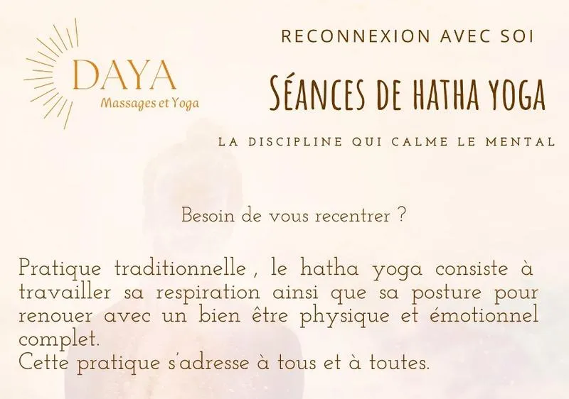 Pratique traditionnelle , le hatha yoga consiste à travailler sa respiration ainsi que sa posture pour renouer avec un bien être physique et émotionnel complet.