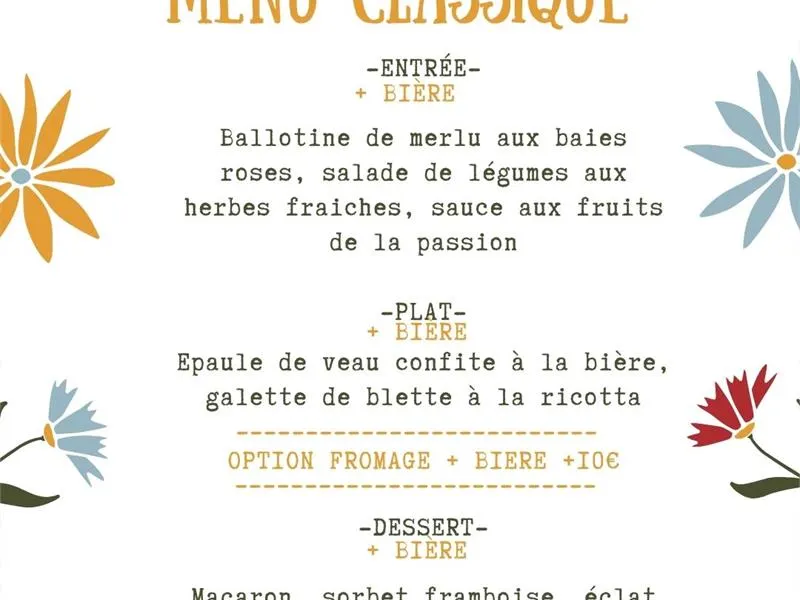 Au menu ? Une création sur mesure par le chef, où chaque plat s'accorde avec une bière de la Brasserie Cheval, pour une dégustation originale et savoureuse. De l'entrée au dessert, vos papilles voyageront entre