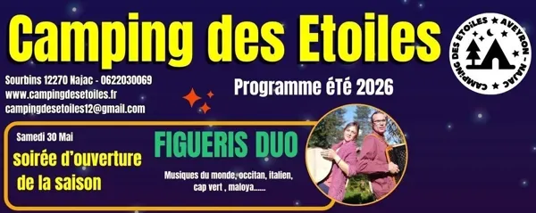 Venez nombreux pour l'ouverture de la saison au Camping des Etoiles le tout en fanfare avec Figueris Duo !
