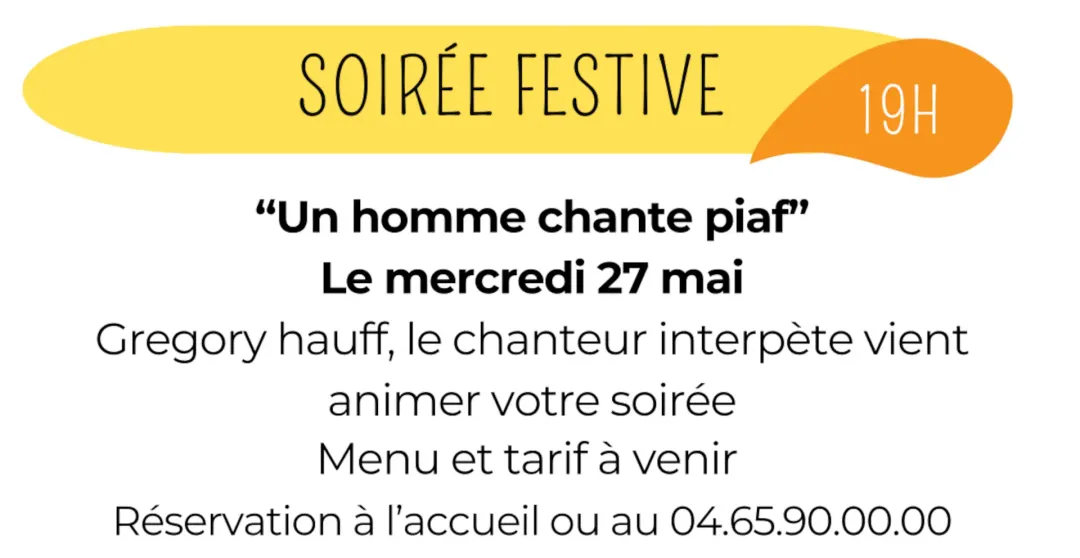 Venez nombreux écouter Gregory hauff, chanteur interpète qui vient animer votre soirée.
