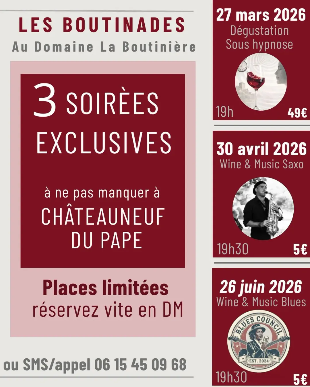 Le Domaine La Boutinière vous invite dans une ambiance saxo, accompagnée d’une dégustation à l’aveugle offerte.