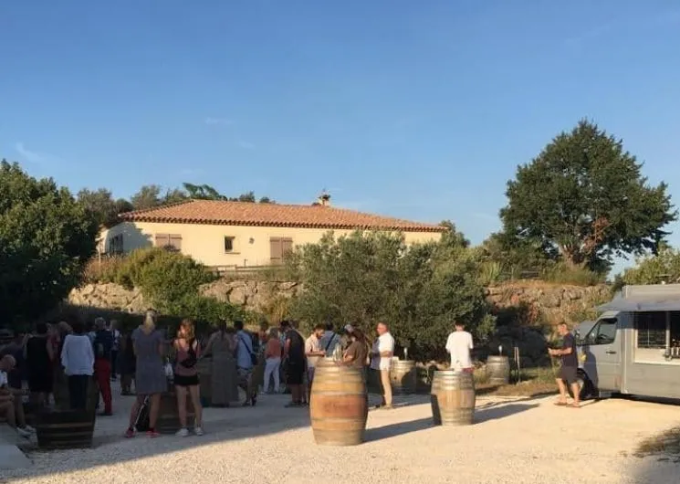 Avec le Food-Truck Le Camion Qui Grille. Des assiettes d’apéritif et des desserts par Fabienne seront aussi disponibles. Musique live par Darvey. Une balade autonome est possible en début de soirée pour découvrir le magnifique cratère météoritique. Nous fournissons des cartes et des codes QR le long du chemin avec des informations sur le domaine, les cépages, les animaux, les plantes et l’histoire de la météorite. Ensuite, retour au domaine pour profiter de la musique live, des food-trucks et un bar à vin qui propose de l’AOP Faugères et de l’AOP Saint-Chinian