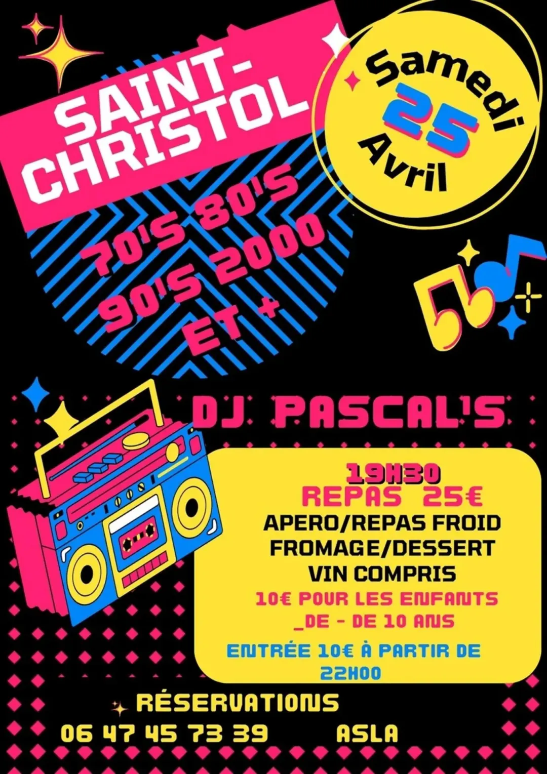 Venez vous ambiancer sur de la musique des années 70, 80, 90, 2000 et encore plus avec DJ PASCAL'S autour d'un bon repas.