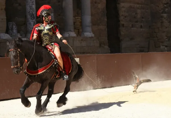 Plongez au cœur de l'Empire romain, vivez un spectacle grandiose où la puissance du cheval rencontre la majesté des rapaces. Dans une ambiance inspirée de l'Antiquité, cavaliers et fauconniers vous entraîne dans un voyage hors du temps. Aigles, faucons et buses survolent le public tandis que les chevaux, guidés avec précision et élégance, évoquent la discipline et la bravoure des légions romaines.