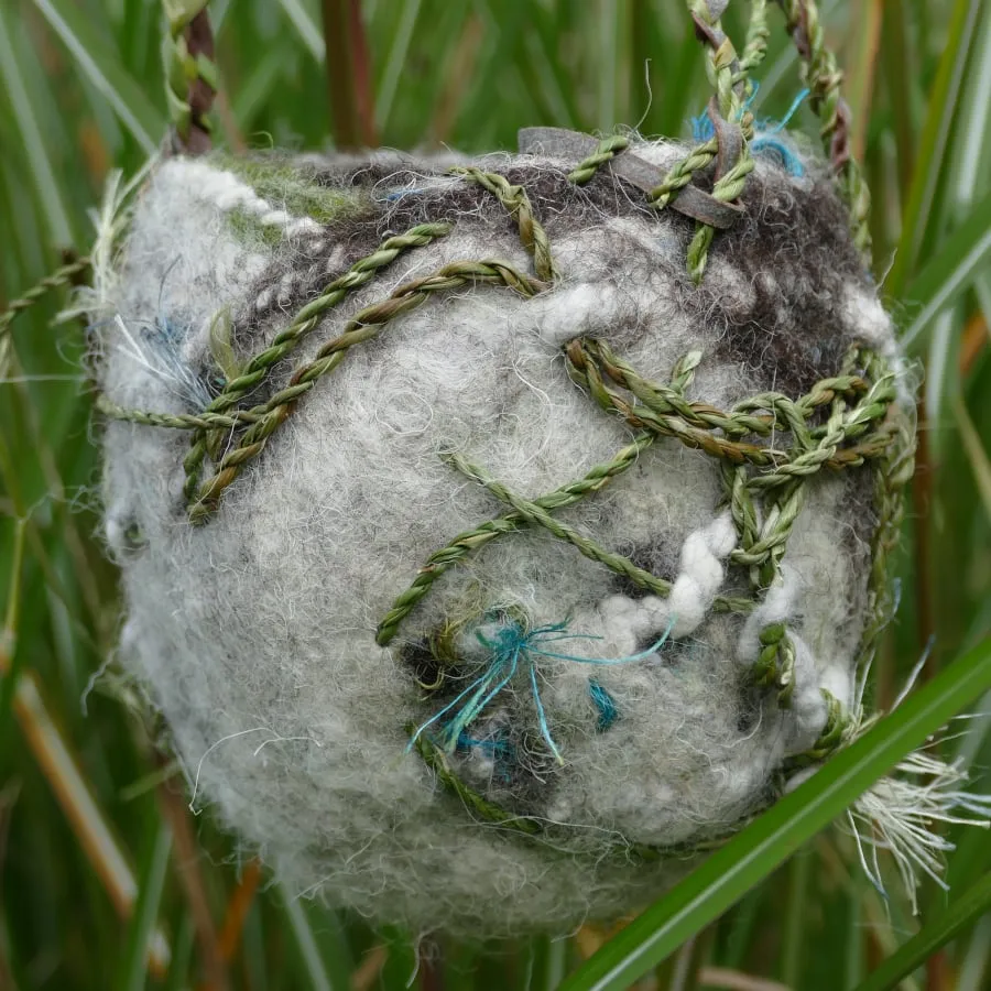 L’atelier est accessible aux personnes débutantes en feutrage et tressage, mais convient aussi aux personnes ayant déjà une pratique de feutrage ou de vannerie sauvage. Nous créons un objet (une petite corbeille) en feutre humide, et y ajoutons des éléments de tressage en fibre végétales (lianes, écorces), sur un mode poétique et créatif.