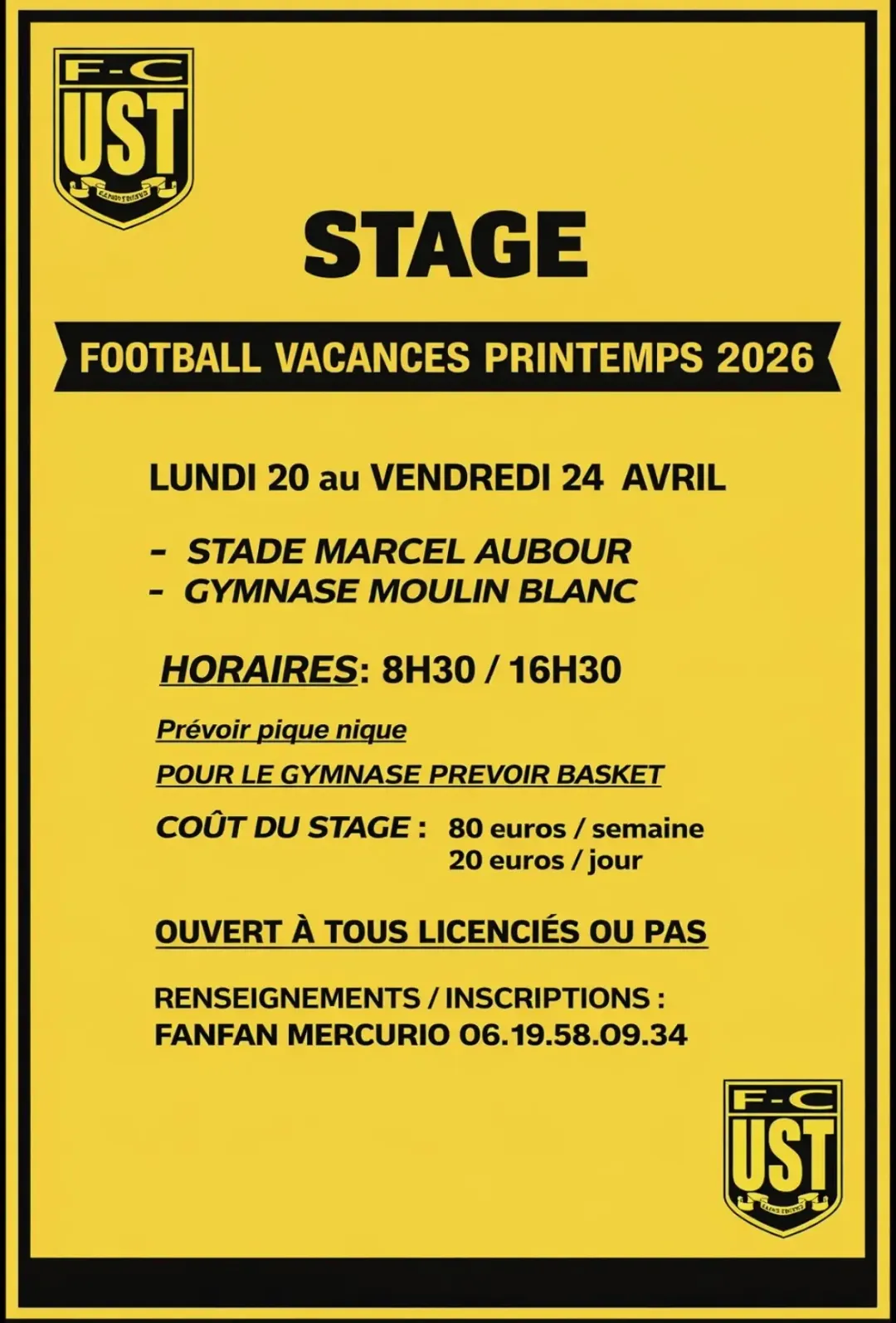 Stage de Football du lundi 20 au vendredi 24 avril ouvert à tous, licencié du club ou non !