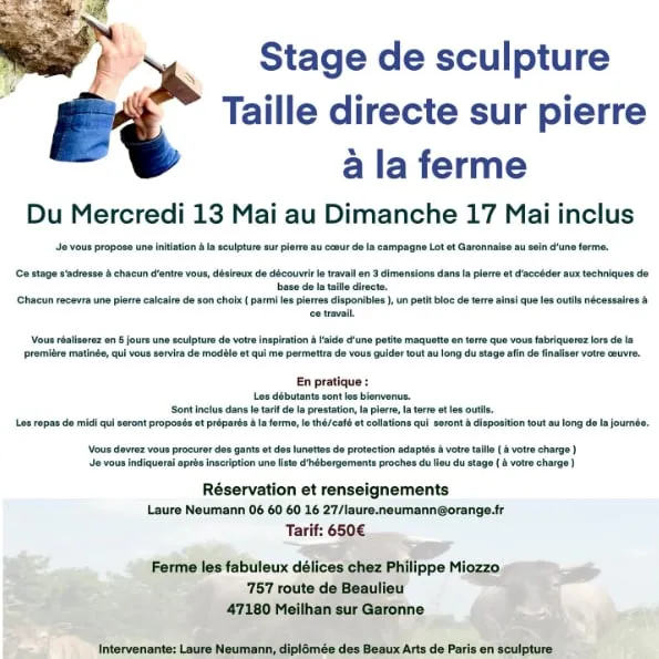 Stage d'initiation à la sculpture sur pierre au cœur de la campagne Lot et Garonnaise au sein d'une ferme.